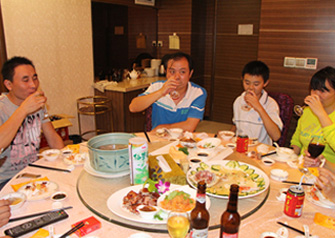 中秋到,祝團(tuán)圓,2015年9月24日晚,我集團(tuán)部分直屬部門相聚一起慶祝傳統(tǒng)中秋佳節(jié),并進(jìn)行了閩南特色文化活動——博餅。 晚會開始進(jìn)行的是宴會,會上集團(tuán)領(lǐng)導(dǎo)親自敬酒,祝大家節(jié)日快樂,身體健康,大家積極回應(yīng),其樂融融。酒足飯飽之后,開始重頭戲----擲骰子博餅競逐「狀元」銜頭,每圍按擲得「狀元」、「榜眼」、「探花」、「四進(jìn)」、「舉人」及「秀才」,對應(yīng)豐富獎品。全場歡聲笑語,氣氛熱烈。 ![]() ![]()