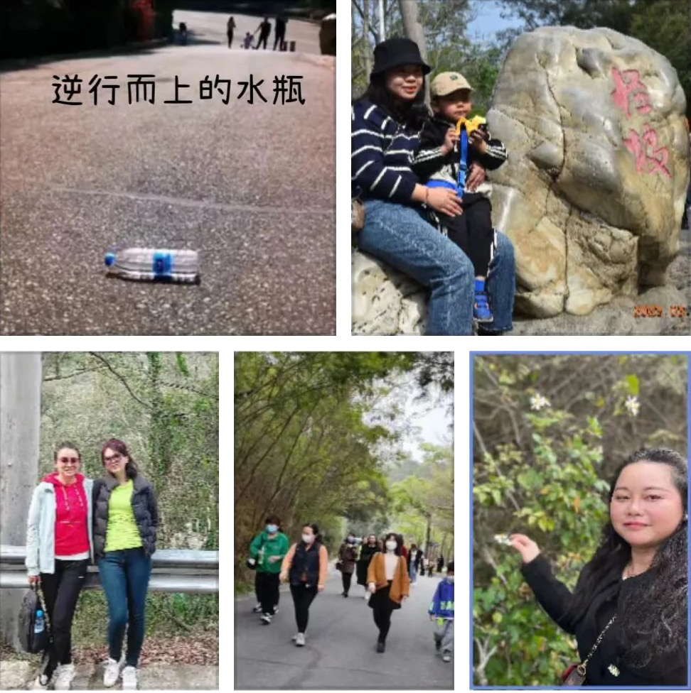 抵達(dá)第一站:廈門怪坡 “廈門怪坡,位于廈門文曾路通往半嶺宮的路上,怪坡”長約50米,寬約10米。這個(gè)怪坡怪就怪在東西會(huì)從坡底滾到坡頂,無論如何試,都是這樣的?!肮制隆逼鋵?shí)是人的眼睛因周邊參照物的原因而造成的一種視覺上的錯(cuò)誤。女職工在這里拍照打卡。